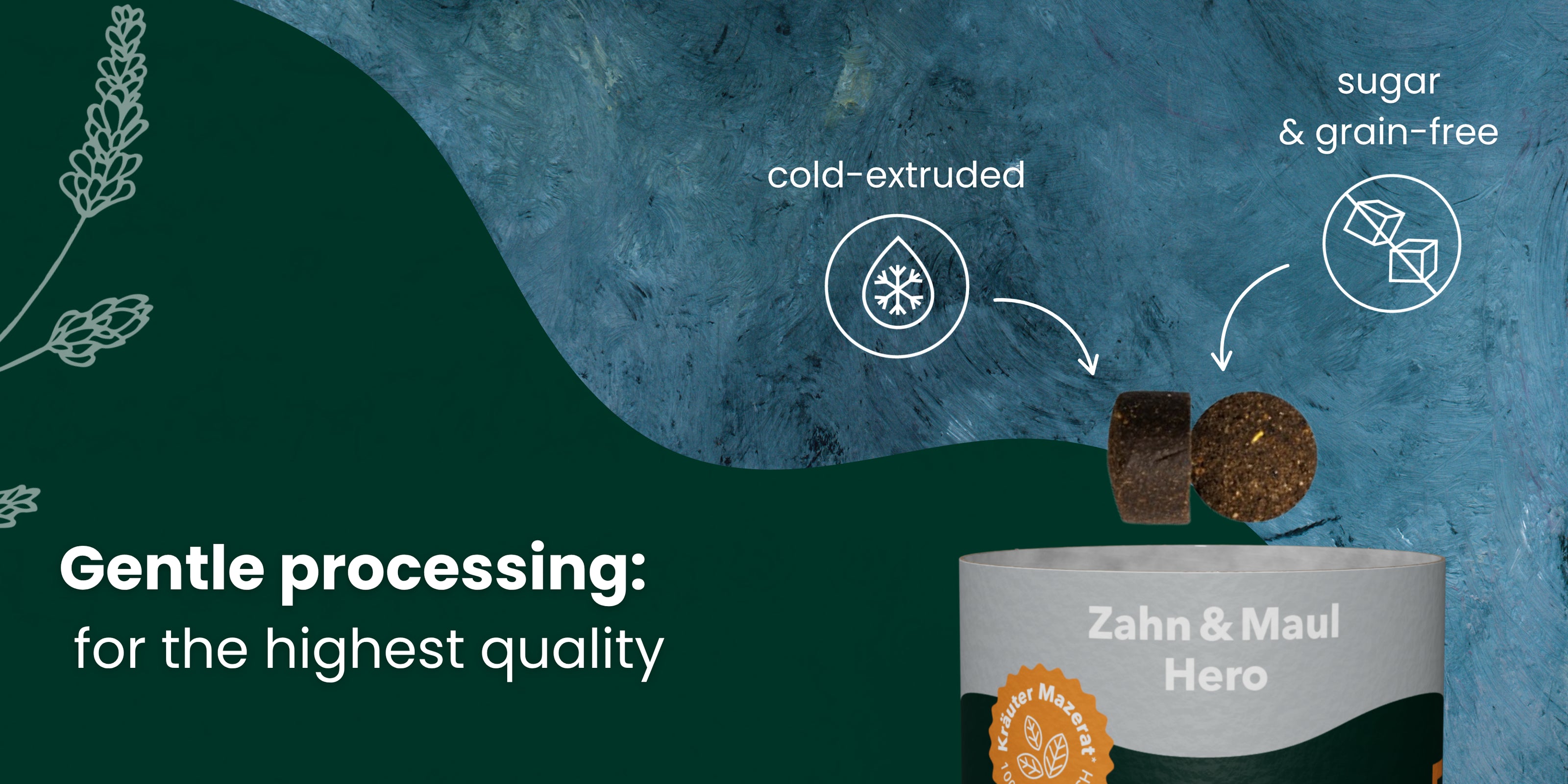 The manufacturing process of NaturDrops is based on cold extrusion, a gentle method in which raw materials are processed at low temperatures. In cold extrusion, the ingredients are processed into high-quality formulations using a special technique without applying high temperatures. This preserves the valuable ingredients and nutrients of the raw materials, which could be lost due to heat exposure in other processes.
